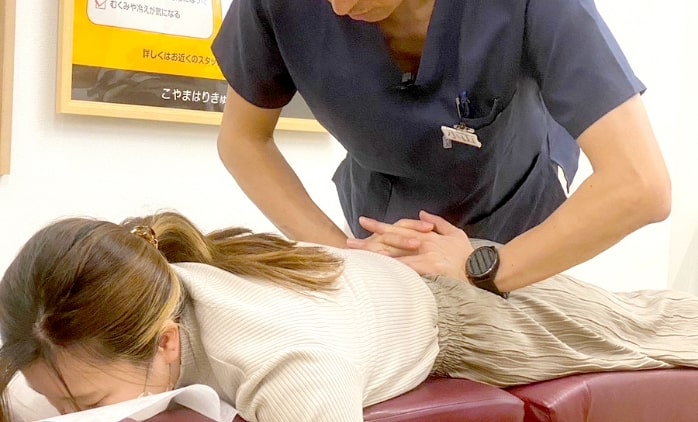 当院では、患部へのマッサージやセルフケアを指導させていただくだけでなく、原因となっている姿勢の矯正や、楽トレという筋力強化のメニューを取り入れることにより肩こりの根本的な改善ができます。